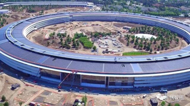 蘋果總部耗資50億美金的辦公大樓“Apple park”,便在樓頂安裝了環(huán)形的光伏發(fā)電系統(tǒng)。通過這套屋頂分布式光伏系統(tǒng),蘋果總部已經(jīng)實現(xiàn)了電力的自給自足。